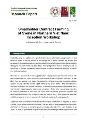 2005Smallholder contract farming of swine in northern Viet Nam: Inception workshop.Costales, A.Son, N.T.Lapar, Ma. LucilaTiongco, Marites M.