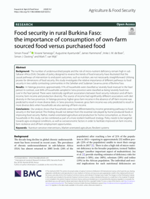 2020Food security in rural Burkina Faso: The importance of consumption of own-farm sourced food versus purchased foodFraval, SimonYameogo, VivianeAyantunde, Augustine A.Hammond, JamesBoer, Imke J.M. deOosting, Simon J.Wijk, Mark T. van