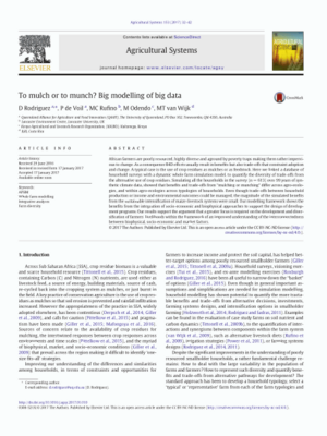Rodriguez, D., Voil, P. de, Rufino, M.C., Odendo, M. and Wijk, M.T. van. 2017. To mulch or to munch? Big modelling of big data. Agricultural Systems 153: 32-42