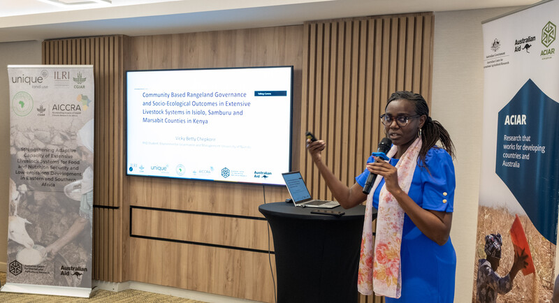 From northern Kenya, Vicky Betty Chepkorir, a doctoral researcher at the University of Nairobi, presented on community-based rangeland governance in Isiolo, Samburu, and Marsabit counties. She painted a complex picture of overlapping and sometimes conflicting governance structures—formal county and national systems, and traditional pastoralist institutions.