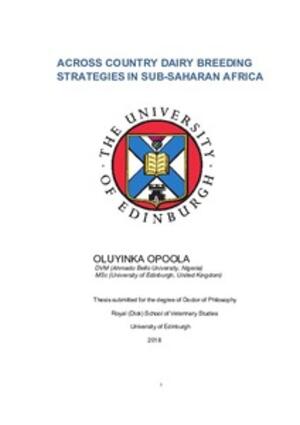 Opoola, O. 2018. Across country dairy breeding strategies in sub-Saharan Africa. PhD thesis. Edinburgh, UK: University of Edinburgh.