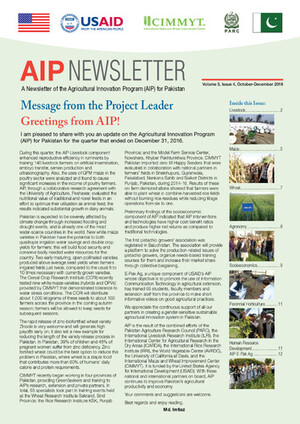CIMMYT. 2016. AIP Newsletter - A Newsletter of the Agricultural Innovation Program (AIP) for Pakistan, Volume 3, Issue 4, October-December 2016. Mexico City, Mexico: CIMMYT.