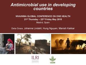 Grace, D., Lindahl, J., Hung Nguyen-Viet and Kakkar, M. 2015. Antimicrobial use in developing countries. Presented at the World Veterinary Association (WVA)/World Medical Association (WMA) global conference on One Health, Madrid, Spain, 21-22 May 2015. Nairobi, Kenya: ILRI.