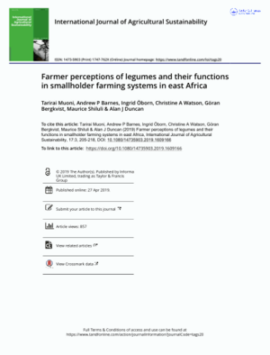 2019Farmer perceptions of legumes and their functions in smallholder farming systems in east AfricaMuoni, TariraiBarnes, Andrew P.Öborn, IngridWatson, Christine A.Bergkvist, GoranShiluli, MauriceDuncan, Alan J.
