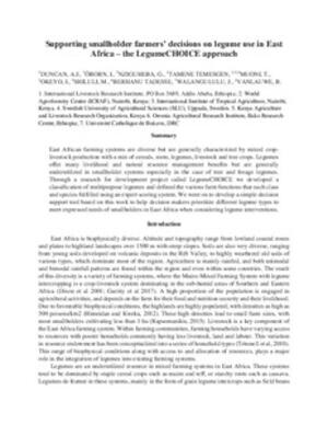 2019Supporting smallholder farmers' decisions on legume use in East Africa - The LegumeCHOICE approachDuncan, Alan J.Öborn, IngridNziguheba, G.Temesgen, TameneMuoni, T.Okeyo, I.Shiluli, M.Berhanu, T.Walangululu, J.Vanlauwe, Bernard