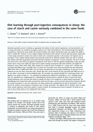 Diet learning through post-ingestive consequences in sheep: the case of starch and casein variously combined in the same foods