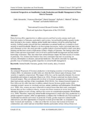 Gendered perspectives on smallholder cattle production and health management in three sites in Tanzania