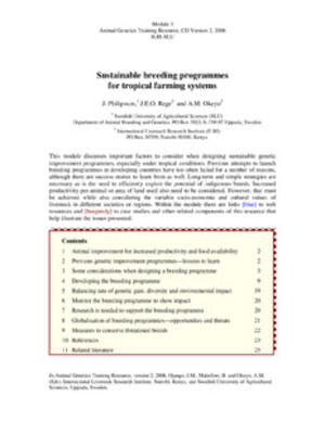 2011Sustainable breeding programmes for tropical farming systemsPhilipsson, J.Rege, J.E.O.Okeyo Mwai, Ally