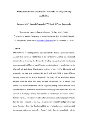 Artificial or natural insemination: the demand for breeding services by smallholders.