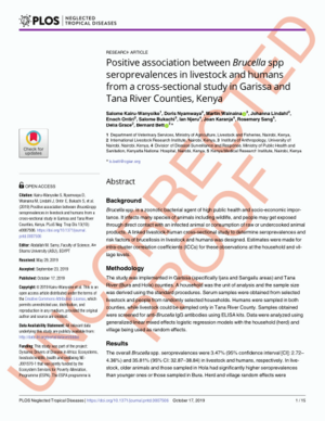 Positive association between Brucella spp. seroprevalences in livestock and humans from a cross-sectional study in Garissa and Tana River Counties, Kenya