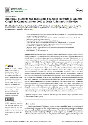 Biological hazards and indicators found in products of animal origin in Cambodia from 2000 to 2022: A systematic review