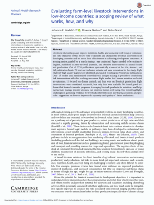 2020Evaluating farm-level livestock interventions in low-income countries: a scoping review of what works, how, and whyLindahl, Johanna F.Mutua, Florence K.Grace, Delia