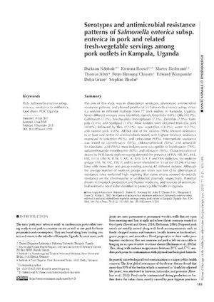 Serotypes and antimicrobial resistance patterns of Salmonella enterica subsp. enterica in pork and related fresh-vegetable servings among pork outlets in Kampala, Uganda