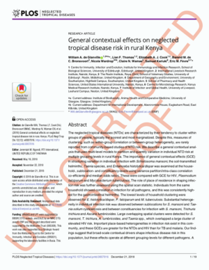 2018General contextual effects on neglected tropical disease risk in rural KenyaGlanville, William A. deThomas, Lian F.Cook, Elizabeth A.J.Bronsvoort, B.M. de C.Wardrop, N.Wamae, C.N.Kariuki, S.Fèvre, Eric M.