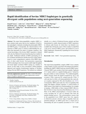 Rapid identification of bovine MHCI haplotypes in genetically divergent cattle populations using next-generation sequencing