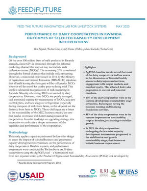 2020Performance of dairy cooperatives in Rwanda: Outcomes of selected capacity development interventionsBizinde, B.Ouma, Emily A.Kariuki, J.
