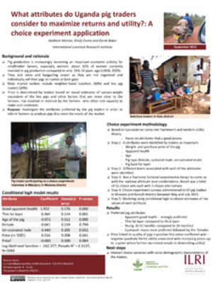 2013What attributes do Uganda pig traders consider to maximize returns and utility? A choice experiment applicationMtimet, NadhemOuma, Emily A.Baker, Derek