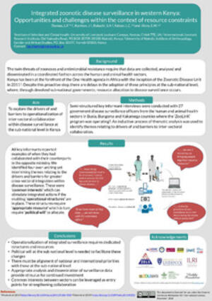2020Integrated zoonotic disease surveillance in western Kenya: Opportunities and challenges within the context of resource constraintsThomas, Lian F.Rushton, JonathanBukachi, S.A.Falzon, Laura C.Fèvre, Eric M.