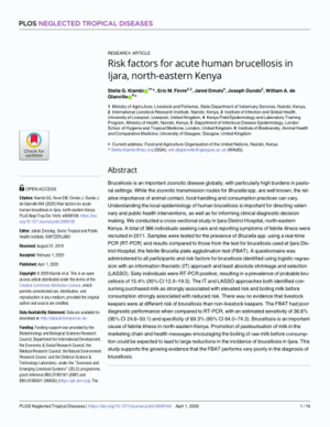 2020Risk factors for acute human brucellosis in Ijara, north-eastern KenyaKiambi, S.G.Fèvre, Eric M.Omolo, J.Oundo, J.Glanville, William A. de