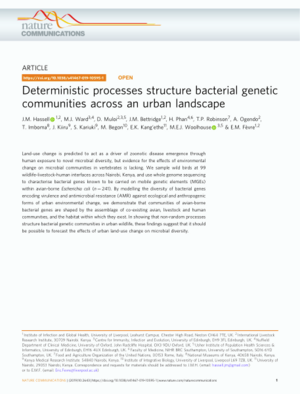 2019Deterministic processes structure bacterial genetic communities across an urban landscapeHassell, James M.Ward, M.J.Muloi, Dishon M.Bettridge, Judy M.Phan, H.Robinson, Timothy P.Ogendo, A.Imboma, TitusKiiru, J.Kariuki, S.Begon, M.Kang'ethe, Erastus K.Woolhouse, Mark E.J.Fèvre, Eric M.