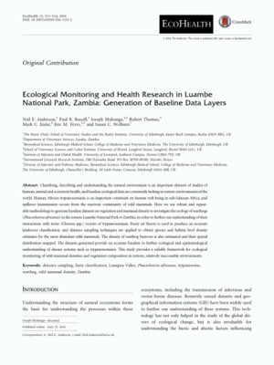 Ecological monitoring and health research in Luambe National Park, Zambia: Generation of baseline data layers
