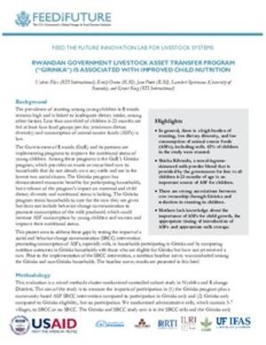 2019Rwandan government livestock asset transfer program (“Girinka”) is associated with improved child nutritionFlax, V.Ouma, Emily A.Poole, Elizabeth J.Izerimana, LambertKing, G.