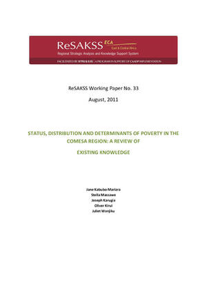 2011Status, distribution and determinants of poverty in the COMESA region: A review of existing knowledgeKabubo-Mariara, J.Massawe, Stella C.Karugia, Joseph T.Kirui, Oliver K.Wanjiku, Juliet