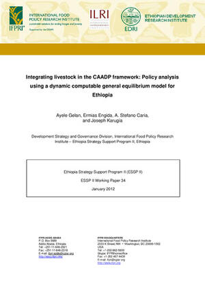 2012Integrating livestock in the CAADP framework: Policy analysis using a dynamic computable general equilibrium model for EthiopiaGelan, AyeleEngida, ErmiasCaria, A. StefanoKarugia, Joseph T.