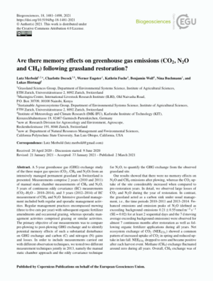 2021Are there memory effects on greenhouse gas emissions (CO2, N2O and CH4) following grassland restoration?Merbold, LutzDecock, CharlotteEugster, WernerFuchs, KathrinWolf, BenjaminBuchmann, NinaHörtnagl, Lukas