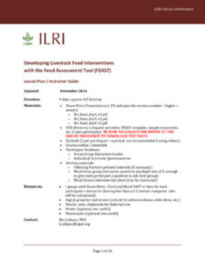 2014Developing livestock feed interventions with the feed assessment tool (FEAST): Lesson plan / Instructor guideInternational Livestock Research Institute