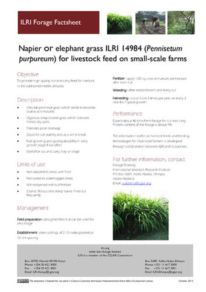 2013Napier or elephant grass ILRI 14984 (Pennisetum purpureum) for livestock feed on small-scale farms (English Version)International Livestock Research Institute