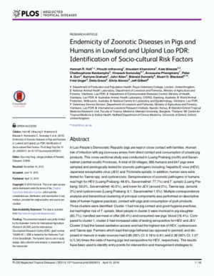 Endemicity of zoonotic diseases in pigs and humans in lowland and upland Lao PDR: Identification of socio-cultural risk factors