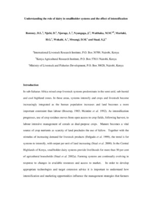 2004Understanding the role of dairy in smallholder systems and the effect of intensificationRomney, Dannie L.Njubi, D.Nyangaga, J.Waithaka, M.M.Muriuki, H.G.Wokabi, A.Mwangi, David MianoStaal, Steven J.