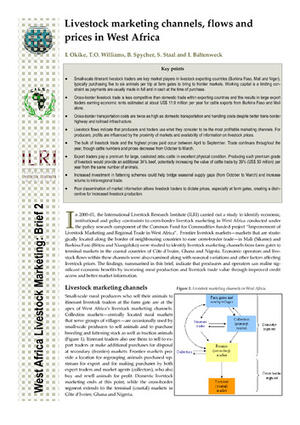 2004Livestock marketing channels, flows and prices in West Africa.Okike, IheanachoWilliams, Timothy O.Spycher, B.Staal, Steven J.Baltenweck, Isabelle