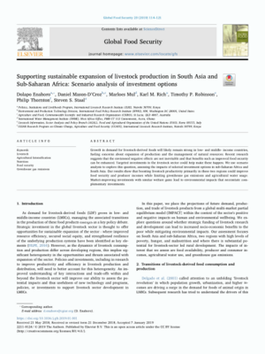 2019Supporting sustainable expansion of livestock production in South Asia and sub-Saharan Africa: Scenario analysis of investment optionsEnahoro, Dolapo K.Mason-D'Croz, DanielMul, MarloesRich, Karl M.Robinson, Timothy P.Thornton, Philip K.Staal, Steven J.