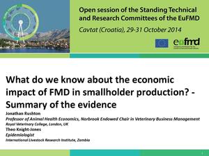 2014What do we know about the economic impact of foot and mouth disease in smallholder production? Summary of the evidenceRushton, JonathanKnight-Jones, Theodore J.D.