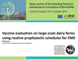 2014Vaccine evaluation on large-scale dairy farms using routine prophylactic schedules for FMDLyons, N.A.Knight-Jones, Theodore J.D.Bartels, C.Dulu, T.D.Stärk, K.D.C.Sumption, Keith J.Fine, P.E.M.