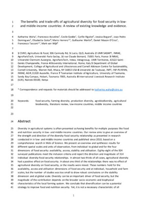 The benefits and trade-offs of agricultural diversity for food security in low- and middle-income countries: A review of existing knowledge and evidence