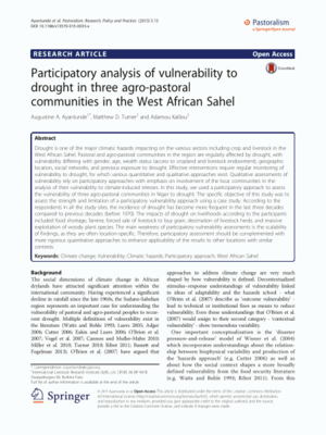 2015Participatory analysis of vulnerability to drought in three agro-pastoral communities in the West African SahelAyantunde, Augustine A.Turner, M.D.Kalilou, A.