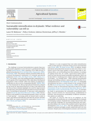 2015Sustainable intensification in drylands: What resilience and vulnerability can tell usRobinson, Lance W.Ericksen, Polly J.Chesterman, SabrinaWorden, J.S.