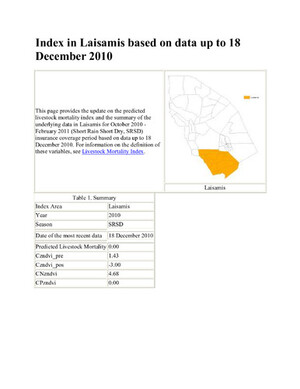 Update on IBLI Index in Laisamis based on data up to 18 December 2010