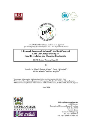 2004A research framework to identify the root causes of land use change leading to land degradation and changing biodiversityOlson, J.M.Misana, S.Campbell, D.J.Mbonile, M.Mugisha, S.