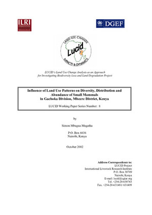 2002Influence of land use patterns on diversity, distribution and abundance of small mammals in Gachoka dvision of Mbeere District, KenyaMbugua, S.M.