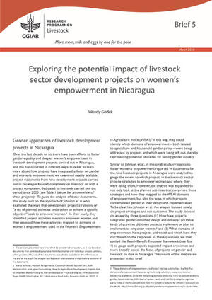 2019Exploring the potential impact of livestock sector development projects on women’s empowerment in NicaraguaGodek, Wendy