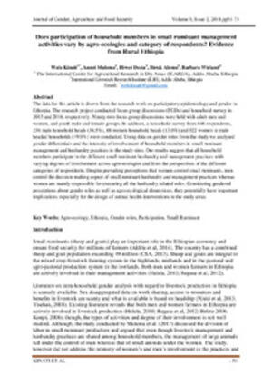 Does participation of household members in small ruminant management activities vary by agro-ecologies and category of respondents? Evidence from Rural Ethiopia