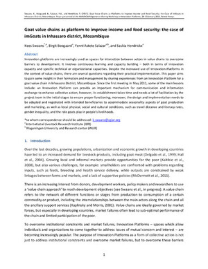 2013Goat value chains as platforms to improve income and food security: The case of imGoats in Inhassaro District, MozambiqueSwaans, Cornelis P.M.Boogaard, Birgit K.Salazar, Y.A.Hendrickx, Saskia C.J.