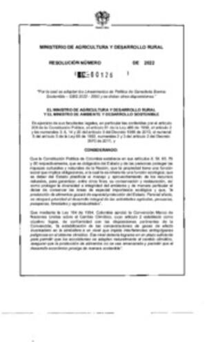 Resolución número 126 de 2022, Por la cual se adoptan los Lineamientos de Política de Ganadería Bovina Sostenible - GBS 2022 - 2050 y se dictan otras disposiciones