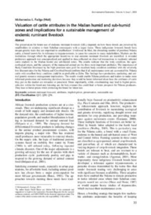 2013Valuation of cattle attributes in the Malian humid and sub-humid zones and implications for sustainable management of endemic ruminant livestockFadiga, M.L.