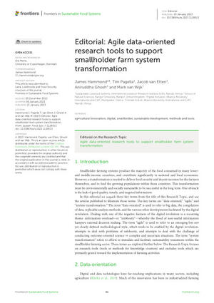 2023Editorial: Agile data-oriented research tools to support smallholder farm system transformationHammond, JamesPagella, TimEtten, Jacob vanGhosh, AniruddhaWijk, Mark T. van