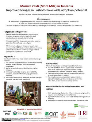 2017Improved forages in Lushoto have wide adoption potentialNdah, Hycenth T.Schuler, JohannesNkwain, Vandoline N.Nzogela, BeatusPaul, Birthe K.